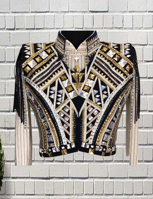Gold with Blue Western Show Jacket on Black base